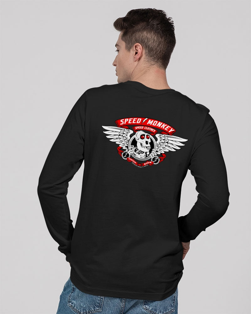 Speed Monkey Bones Brigade White Unisex Jersey Long Sleeve Tee | Bella + Canvas